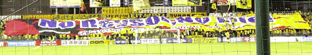 ![]() 競技場の8割が黄色。Awayゴール裏でも 黄色い人が押し寄せています。 妖しい人型の風船飛ばしたり、網によじ登ったり 警備員とおっかけっこしたり とにかく 柏サポは熱い! |